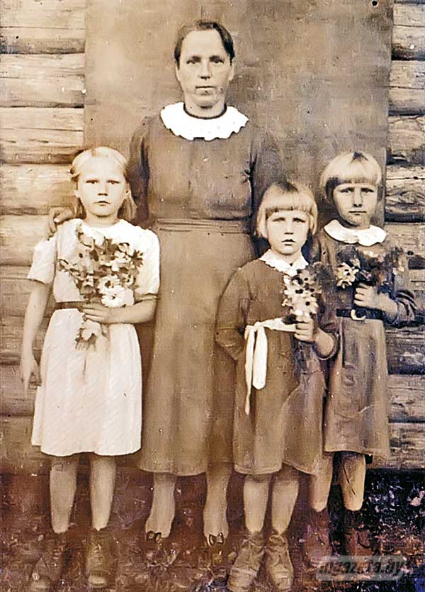Аднойчы ў школе ім аказалі гуманітарную дапамогу – выдалі кожнай з сясцёр па пары чаравікаў. На здымку 1947 года яны ў сукенках, што з любоўю пашыла матуля, і ў велікаватых не па сезоне чаравіках: туфляў не было за што купіць.