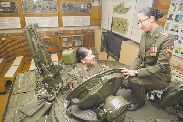 — Дзяўчаты з Венесуэлы — старанныя вучаніцы, — гаворыць Аляксей Ціткоў. — Нават юнакамі камандуюць. Малайцы! Упэўнены, яны будуць добрымі афіцэрамі венесуэльскай арміі.