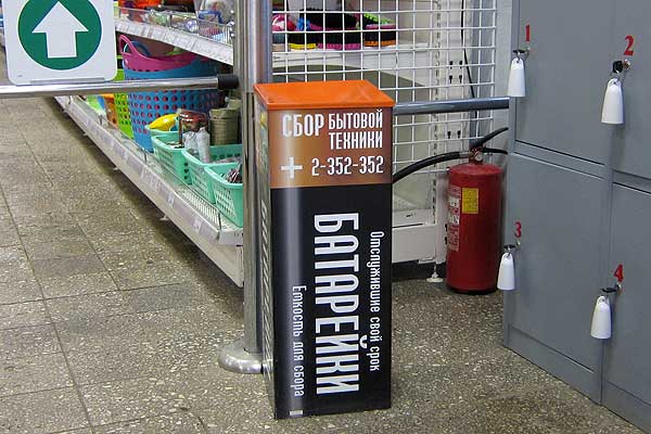 НА ЗДЫМКУ: ёмістасць для збору адпрацаваных батарэек у краме «Хозмир» (Талачын).